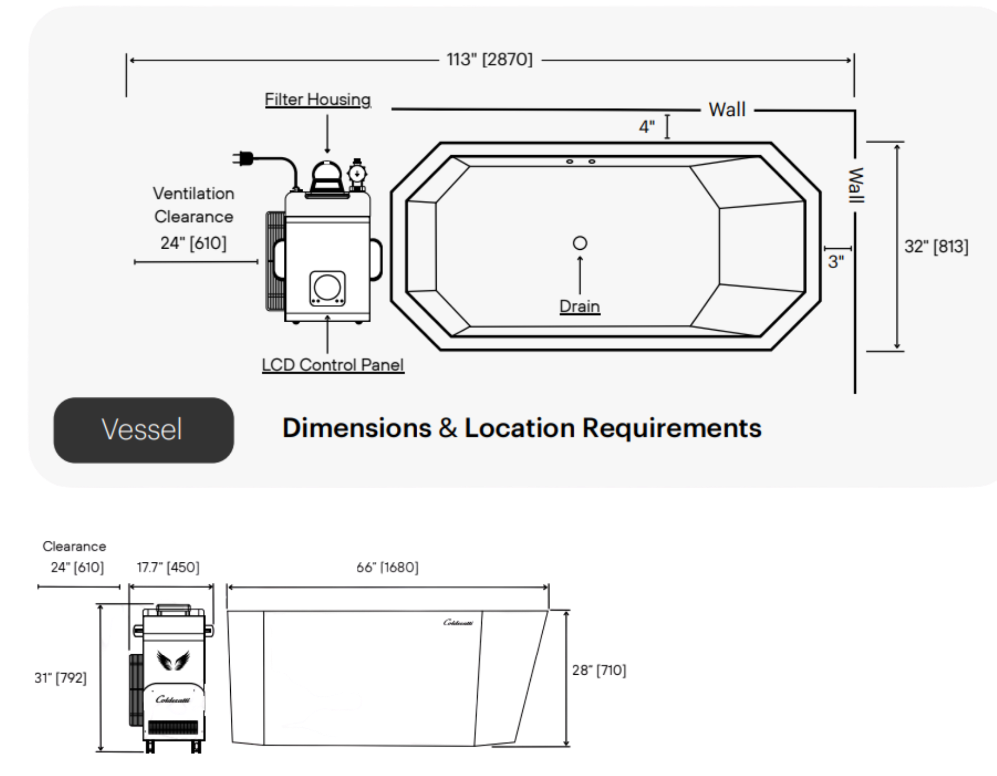Total Required Dimensions (with Hyperchiller): 115″ x 36″ x 28″