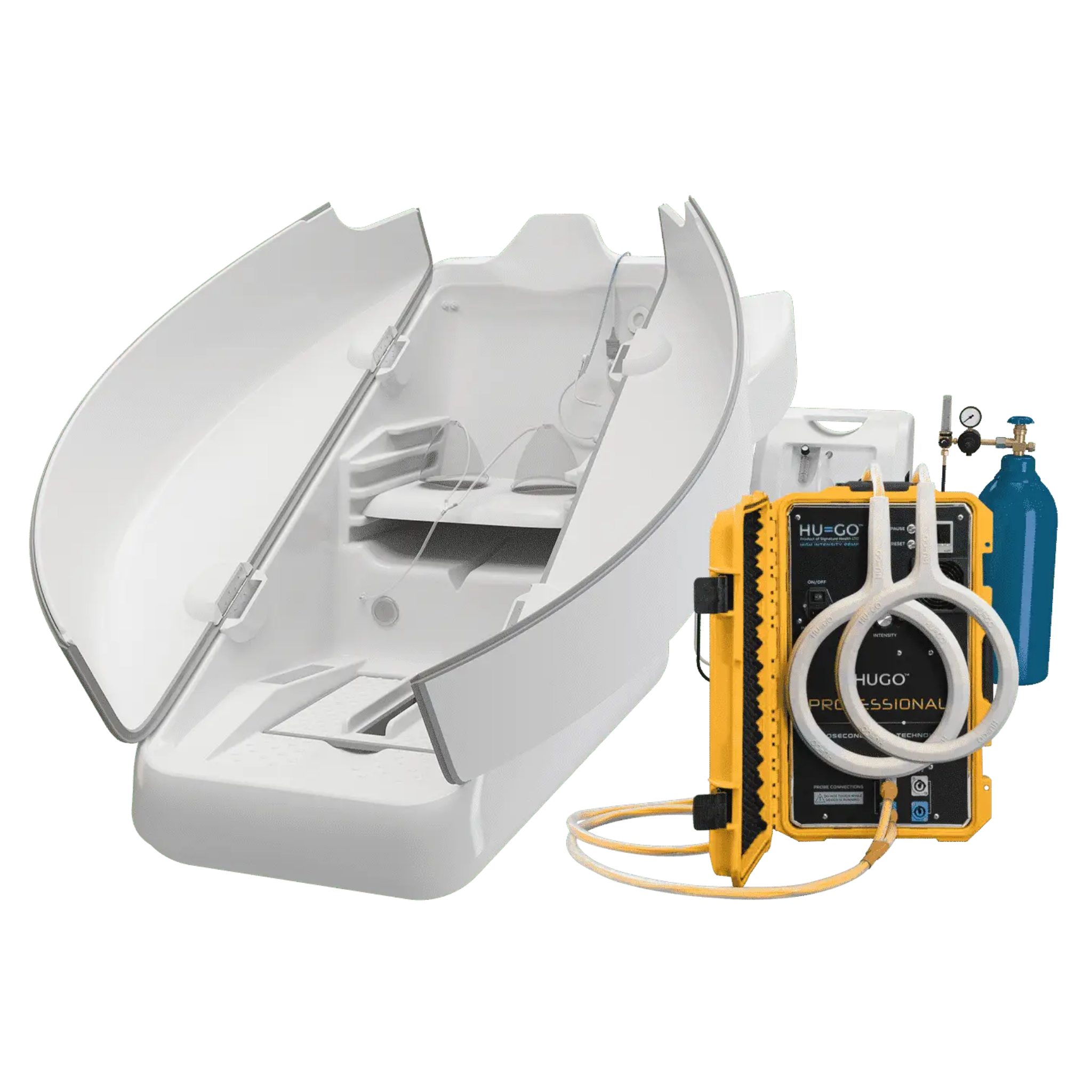 The HOCATT PlatinumTM includes every core technology of the HOCATT Plus, while adding a powerful new dimension: Built-in HUGO ProTM PEMF technology within the chamber itself. When connected to the HUGO PROTM driver, the system activates high-intensity electromagnetic fields throughout the entire chamber, allowing users to receive PEMF simultaneously with its other clinical-grade modalities.